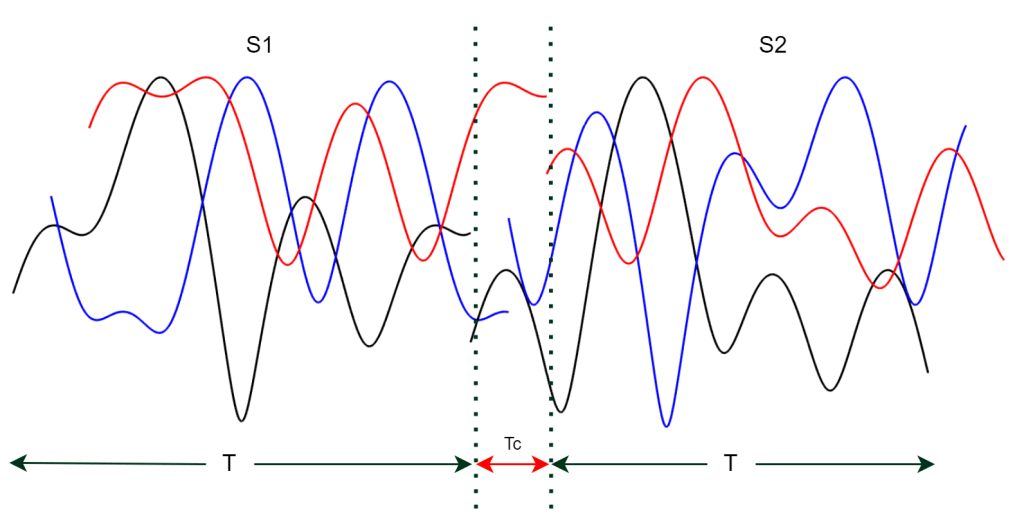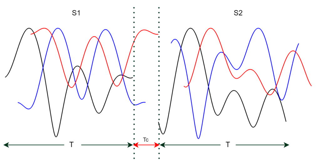Solution 1: Zero padding at the start of signal S2. Just after transmitting symbol S1, for the time Tc seconds, we just transmit zeros and then transmit symbol S2 as follows: